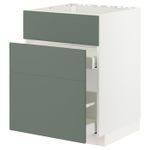 Напольный шкаф под мойку + 3 фронтальных панели/2ящ, белый/Бодарп серо-зеленый 60x60 см IKEA METOD МЕТОД / MAXIMERA МАКСИМЕРА
