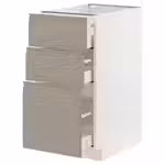 Дополните ее матовыми фасадами УППЛЁВ серо-бежевого цвета со встроенными ручками и скошенными краями, и получится строго очерченный дизайн в современном стиле.