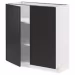 METOD 795.656.75 Напольный шкаф с полками/2дверцами, белый/Nickebo матовый серо-зеленый 80x37 см