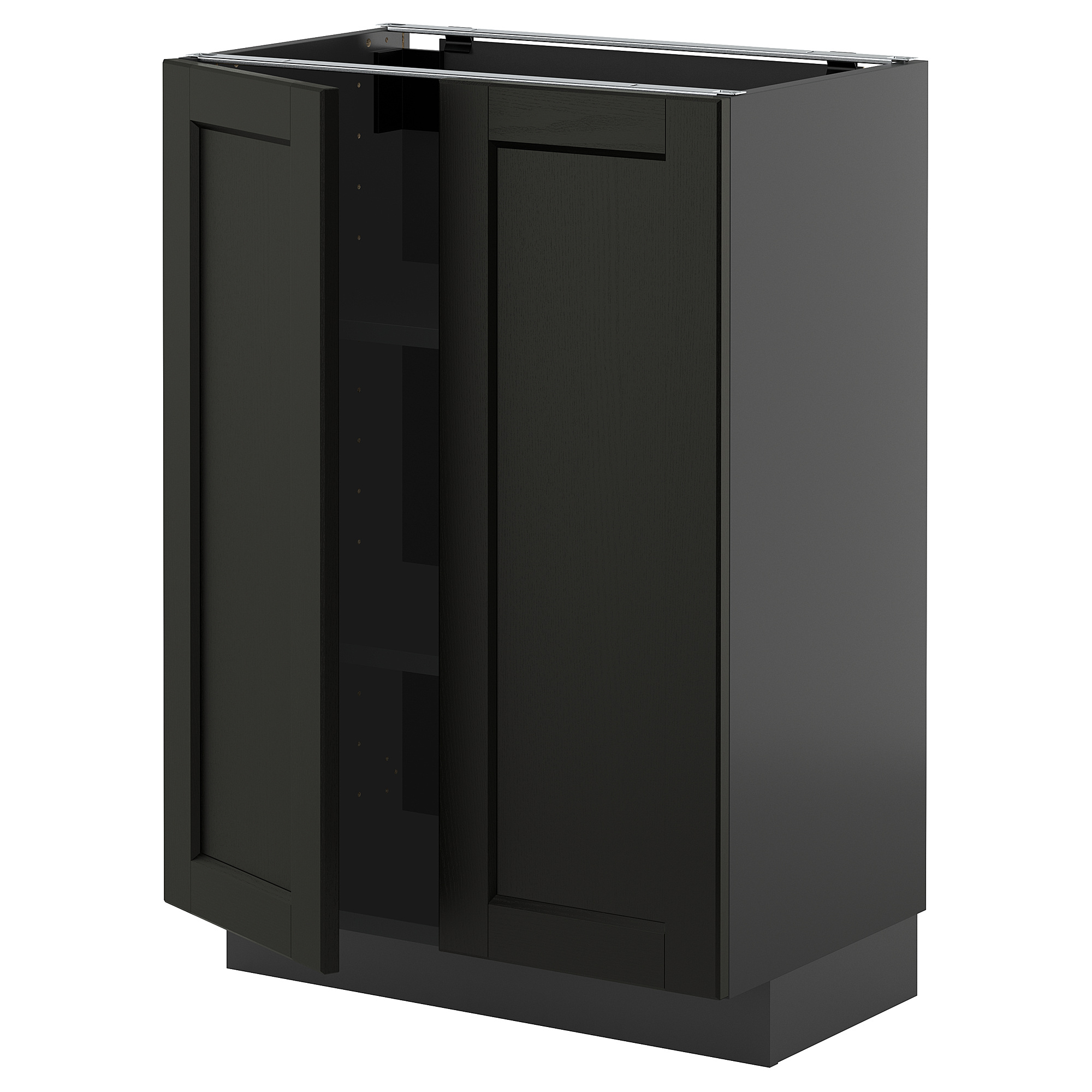 Напольный шкаф с полками, 2 дверцами, черно-серый, Lerhyttan черная морилка, 60x37 см IKEA METOD МЕТОД включает в себя следующие материалы: