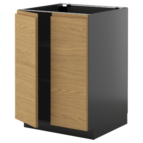 Напольный шкаф с полками, 2 дверцами, черно-серый, Voxtorp под дуб, 60x60 см IKEA METOD МЕТОД включает в себя следующие материалы: