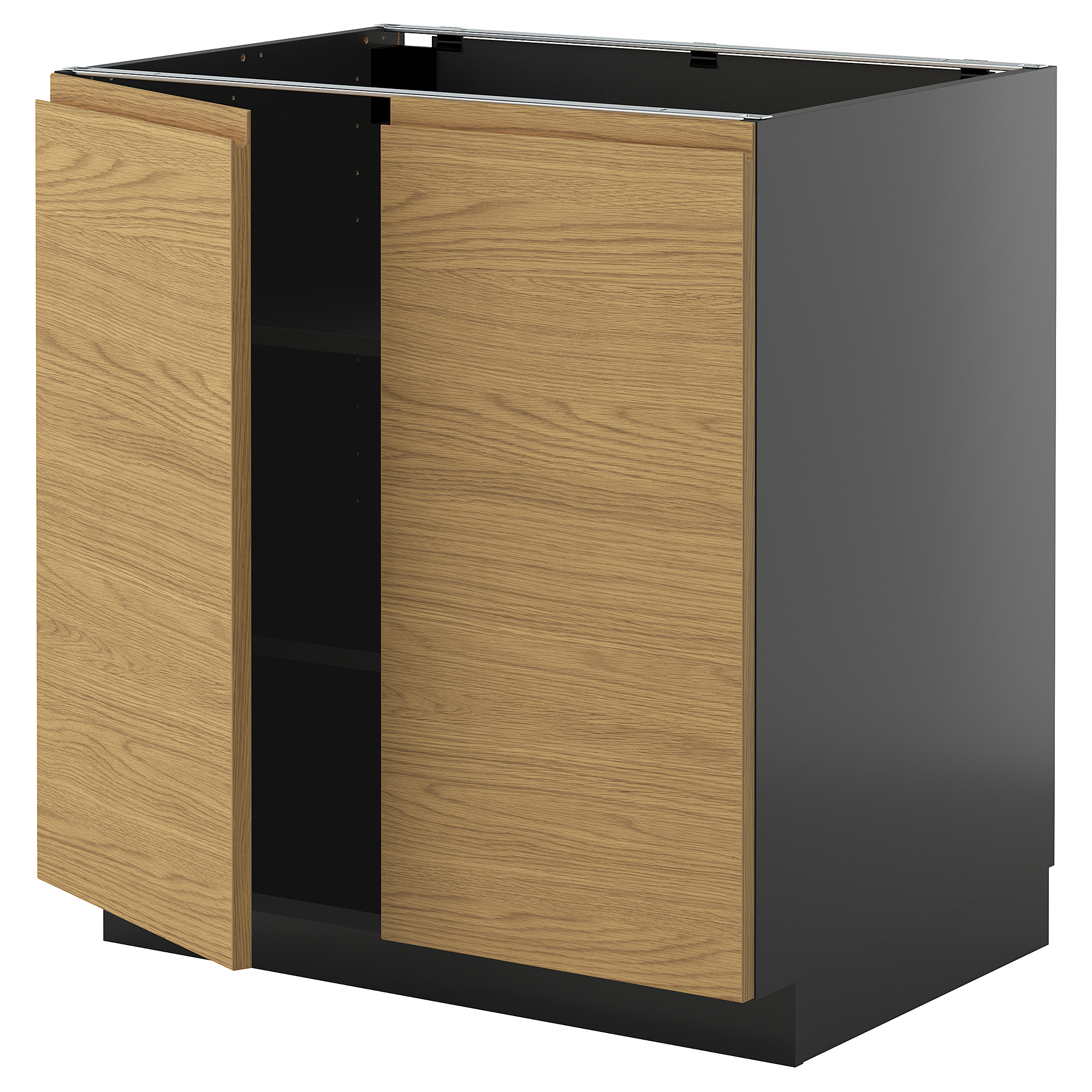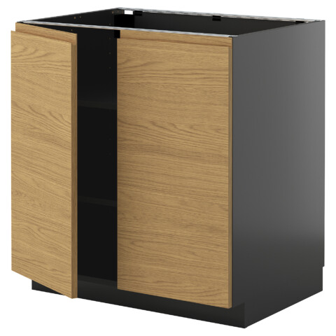Напольный шкаф с полками, 2 дверцами, черно-серый, Voxtorp под дуб, 80x60 см IKEA METOD МЕТОД включает в себя следующие материалы: