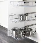 Код кухонного шкафа ME 105Плавно двигающиеся проволочные корзины со стопором.Идеально подходит для хранения кастрюль, сковородок и контейнеров.Каркас имеет устойчивую конструкцию благодаря стенкам из ДСП толщиной 18 мм.