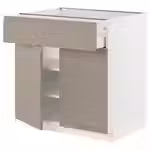 Дополните ее матовыми фасадами УППЛЁВ серо-бежевого цвета со встроенными ручками и скошенными краями, и получится строго очерченный дизайн в современном стиле.