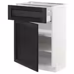 Дополните фасадами ЛЕРХЮТТАН с покрытием черной морилкой, чтобы придать интерьеру теплую традиционную выразительность.