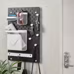 Настенная панель с аксессуарами СКОДИС помогает навести порядок и быстро находить нужные вещи.