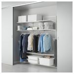 • Комбинацию для хранения АЛЬГОТ легко изменить или дополнить при необходимости. Полки, платяные штанги и корзины просто устанавливаются до щелчка и легко снимаются.
