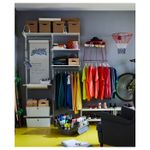 Шины АЛЬГОТ – основа настенной комбинации для хранения. Консоли АЛЬГОТ, на которые вы можете установить полки или другие аксессуары, вставляются в настенные шины до щелчка. Никакие инструменты не нужны.