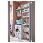 Для сортировки белья используйте выдвижные корзины. Полки можно использовать в помещениях с повышенным уровнем влажности, например в ванной или прачечной.