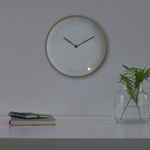 У часов нет секундной стрелки. Маленькие лампочки, расположенные вокруг циферблата, загораются, отмечая каждые пять секунд.Светочувствительный сенсор реагирует на уровень освещенности помещения.