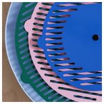 Эти настенные часы похожи на картину, изображение на которой постоянно меняется. Большой зеленый круг показывает часы, бледно-розовый — минуты, а маленький синий движется вперед каждую секунду. Батарейки продаются отдельно.