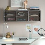 Сетчатые контейнеры придают комбинации для хранения свежесть и легкость, что особенно актуально для комнаты подростка.