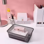 Сетчатые контейнеры придают комбинации для хранения свежесть и легкость, что особенно актуально для комнаты подростка.