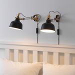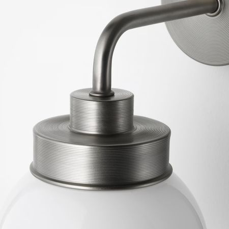 Светильники СОЛКЛИНТ, похожие на нежные украшения из золотистой латуни со сверкающим абажуром из серого стекла, дают мягкий атмосферный свет и создают на стенах и потолке красивую игру света и тени, где бы вы их ни включили.
