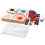 В набор входит: 1 коробка, 4 кубика, 1 куб удвоения и 78 фишек.
