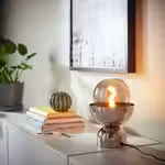 Настольная лампа с лампочкой - под хром/шаровидный серое прозрачное стекло