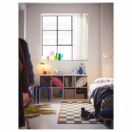 Ковер КЛАССРУМ с орнаментом в клетку и полоской контрастного цвета по бокам придает интерьеру свежесть.