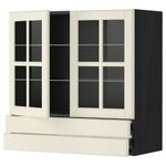 Навесной шкаф, 2 стеклянные дверцы, 2 ящика МЕТОД / ФОРВАРА, черный, Будбин белый с оттенком