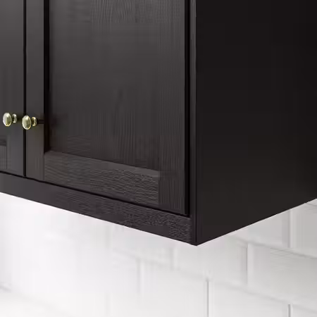 Дополните фасадами ЛЕРХЮТТАН с покрытием черной морилкой, чтобы придать интерьеру теплую традиционную выразительность.