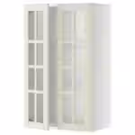 Дополните стеклянными дверцами БУДБИН белого цвета с оттенком со скошенным краем, чтобы подчеркнуть традиционную выразительность и уют интерьера.