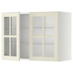 Дополните стеклянными дверцами БУДБИН белого цвета с оттенком со скошенным краем, чтобы подчеркнуть традиционную выразительность и уют интерьера.