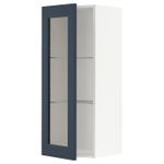 Навесной шкаф/полки/стеклян дверца, белый Акстад/матовая поверхность синий 40x100 см IKEA METOD МЕТОД