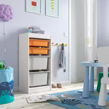 Серия удобной и устойчивой мебели для хранения игрушек.