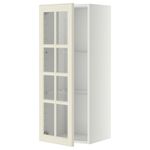 Дополните стеклянными дверцами БУДБИН белого цвета с оттенком со скошенным краем, чтобы подчеркнуть традиционную выразительность и уют интерьера.