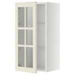 Дополните стеклянными дверцами БУДБИН белого цвета с оттенком со скошенным краем, чтобы подчеркнуть традиционную выразительность и уют интерьера.