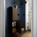 Фасад БЬЁРКЁВИКЕН изготовлен из дубового шпона, который придает каждой дверце непревзойденное качество и естественную красоту. Компактные навесные шкафы позволяют эффективно задействовать стену под хранение вещей.