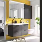 Минималистичный дизайн в сочетании с матовой отделкой темно-серого цвета наполняет ванную комнату теплом и ощущением спокойствия, при этом ванной легко придать индивидуальность, выбрав понравившиеся ручки.