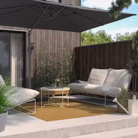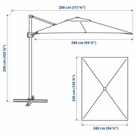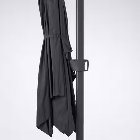 Купол зонта можно поворачивать и наклонять, при этом его опора не будет закрывать обзор и мешать пройти.