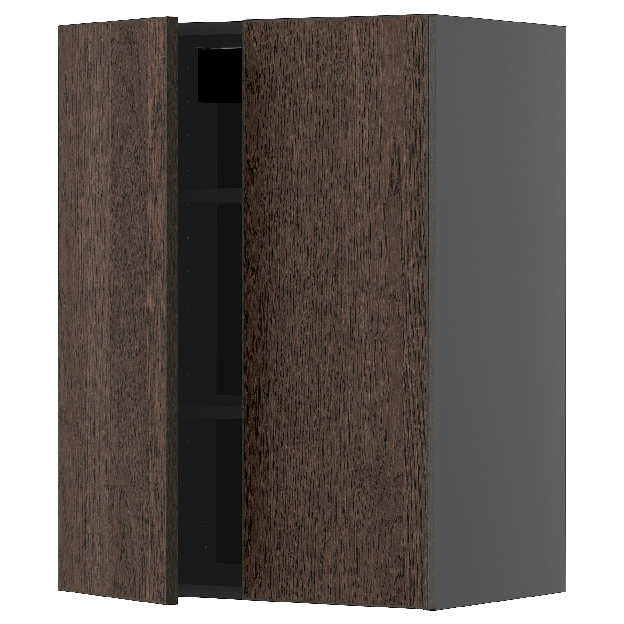 Навесной шкаф с полками, 2 дверцы, черно-серый, Sinarp коричневый, 60x80 см IKEA METOD МЕТОД включает в себя следующие материалы: