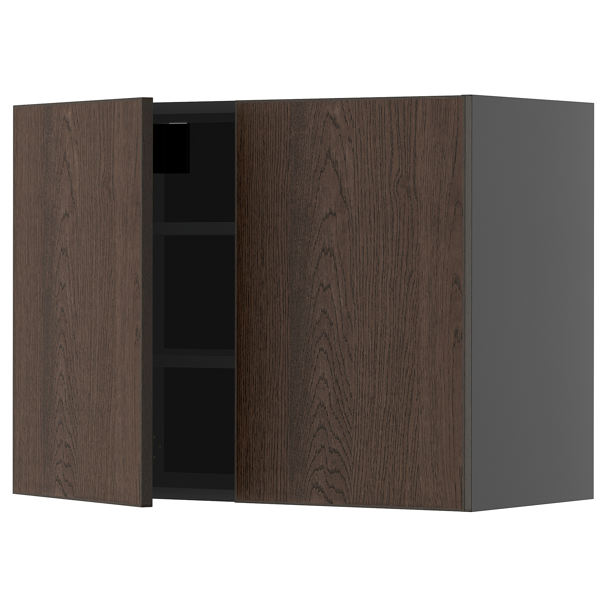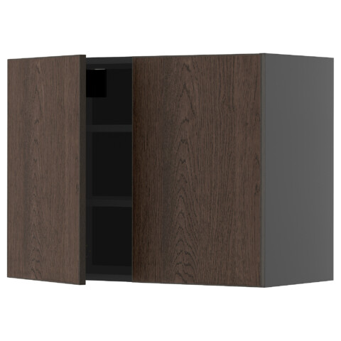 Навесной шкаф с полками, 2 дверцы, черно-серый, Sinarp коричневый, 80x60 см IKEA METOD МЕТОД включает в себя следующие материалы: