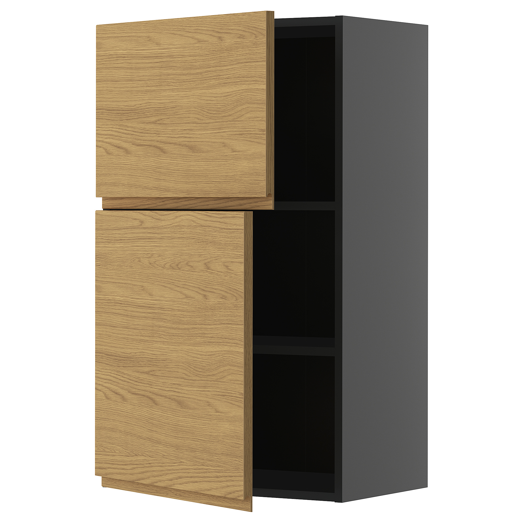 Навесной шкаф с полками, 2 дверцы, черно-серый, Voxtorp под дуб, 60x100 см IKEA METOD МЕТОД включает в себя следующие материалы: