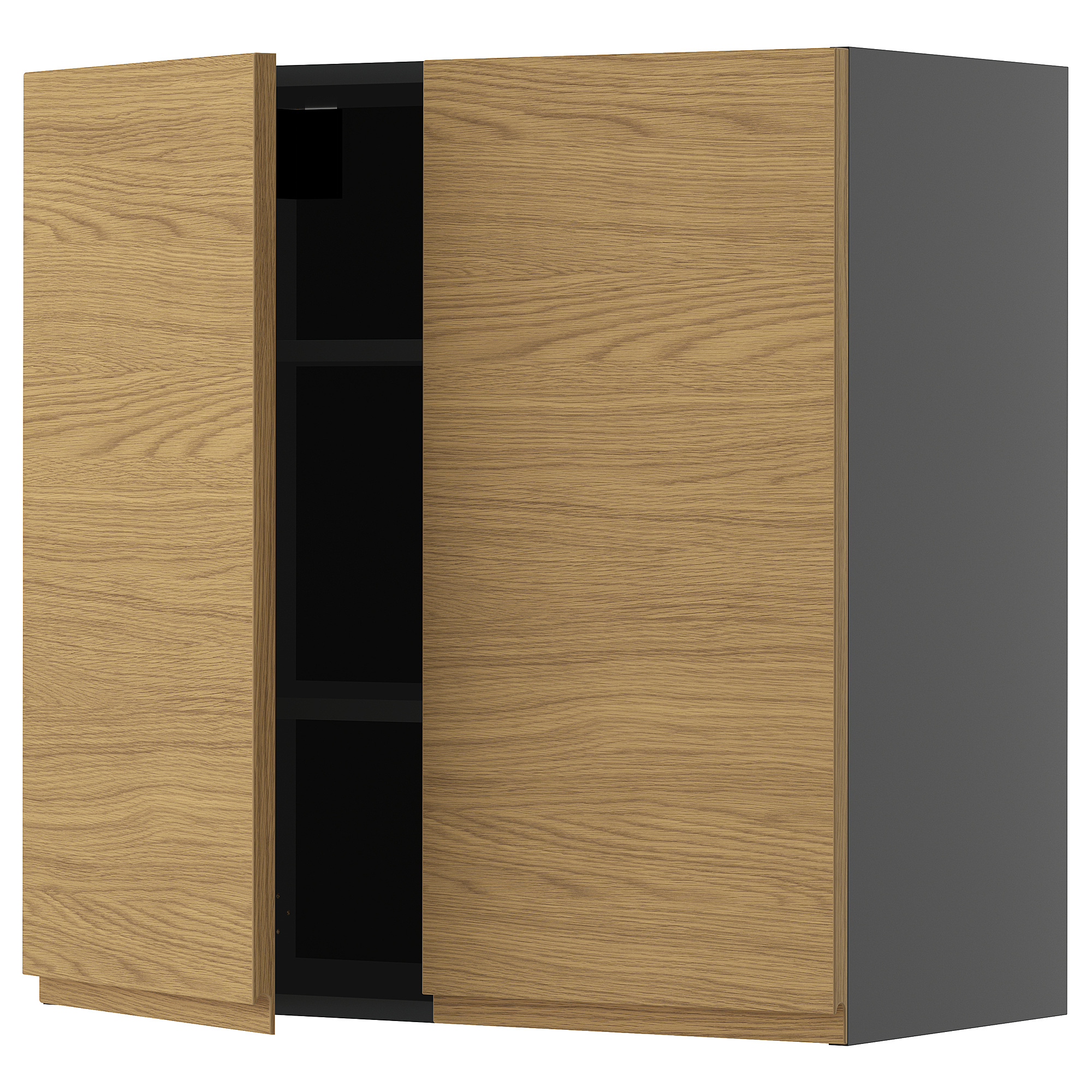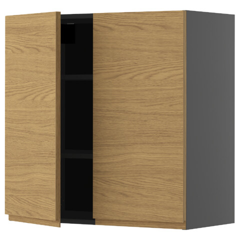 Навесной шкаф с полками, 2 дверцы, черно-серый, Voxtorp под дуб, 80x80 см IKEA METOD МЕТОД включает в себя следующие материалы: