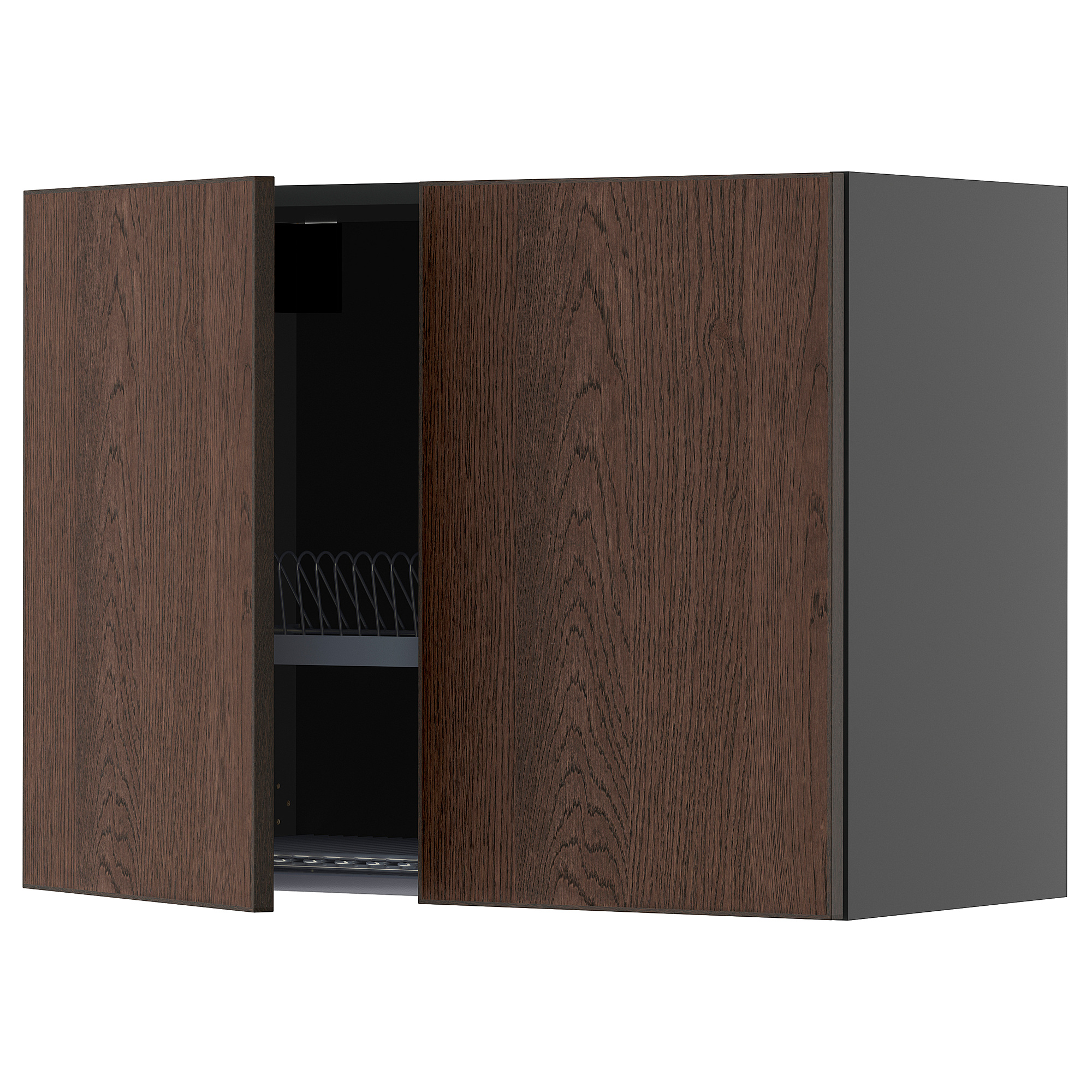 Навесной шкаф с сушилкой, 2 дверцы, черно-серый, Sinarp коричневый, 80x60 см IKEA METOD МЕТОД включает в себя следующие материалы: