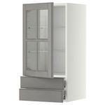 Навесной шкаф, стеклянная дверца, 2 ящика МЕТОД / ФОРВАРА, белый, Будбин серый