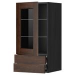 Навесной шкаф, стеклянная дверца, 2 ящика МЕТОД / ФОРВАРА, черный, Эдсерум коричневый