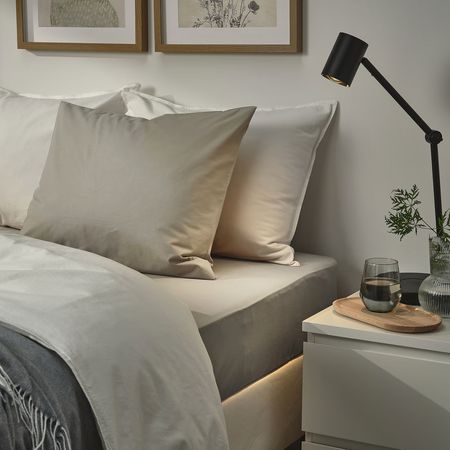 Простыни и наволочки РЁННВЕККМАЛ из высококачественного хлопкового перкаля на ощупь кажутся прохладными.