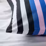 Наволочка SNÖDROTTNING в разноцветную полоску создаёт яркий и динамичный акцент в спальне.