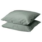 Серо-зеленая наволочка ДВАЛА изготовлена из дышащей и поглощающей влагу хлопковой ткани, что обеспечивает ровную и комфортную температуру в течение всей ночи.