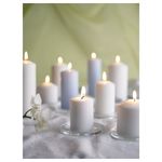 Размеры: (высота x диаметр) 7,8 см x 7,8 см (время горения 15 ч.), 10 см x 6 см (время горения 25 ч.), 13,5 см x 6 см (время горения 30 ч.), 15 см x 7,8 см (время горения 50 ч.), 17 см x 6 см (время горения 45 ч.).