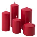 Размеры: (высота x диаметр) 7,8 см x 7,8 см (время горения 15 ч.), 10 см x 6 см (время горения 25 ч.), 13,5 см x 6 см (время горения 30 ч.), 15 см x 7,8 см (время горения 50 ч.), 17 см x 6 см (время горения 45 ч.).