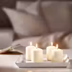 Формовые свечи имеет длительное время горения и прекрасно смотрятся в комбинации на тарелке для свечей.