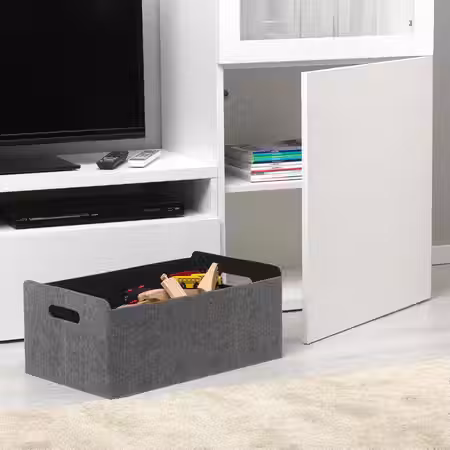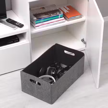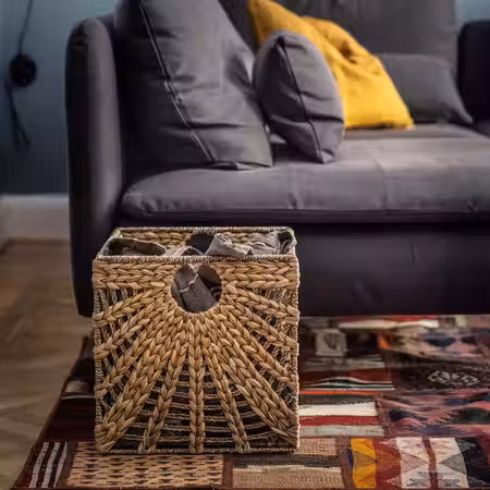 Эта корзина ручной работы с красивым рисунком плетения, через которое видно, что хранится внутри, будет прекрасно смотреться где угодно и подходит по размеру для полок стеллажа КАЛЛАКС.