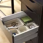Одинаково хорошо подходит для ящика письменного стола или шкафа в ванной.