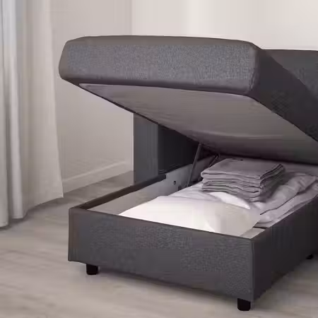 Каркас кровати НОРДЛИ – не только комфортное спальное место, но и вместительное решение для хранения с 6 ящиками, которые закрываются плавно и бесшумно. Вы точно никого не разбудите, даже если среди ночи вам потребуется какая-то вещь, например запасное одеяло.