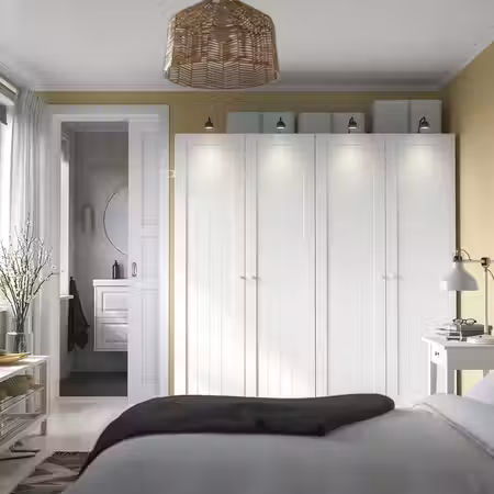 Для любителей белого цвета: вместительный гардероб, где можно расставить обувь, сложить свитера и повесить одежду.