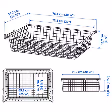 К внутренним органайзерам HJÄLPA относятся рейлинги, корзины, крючки и полки, которые позволяют максимально эффективно использовать пространство для хранения вещей.